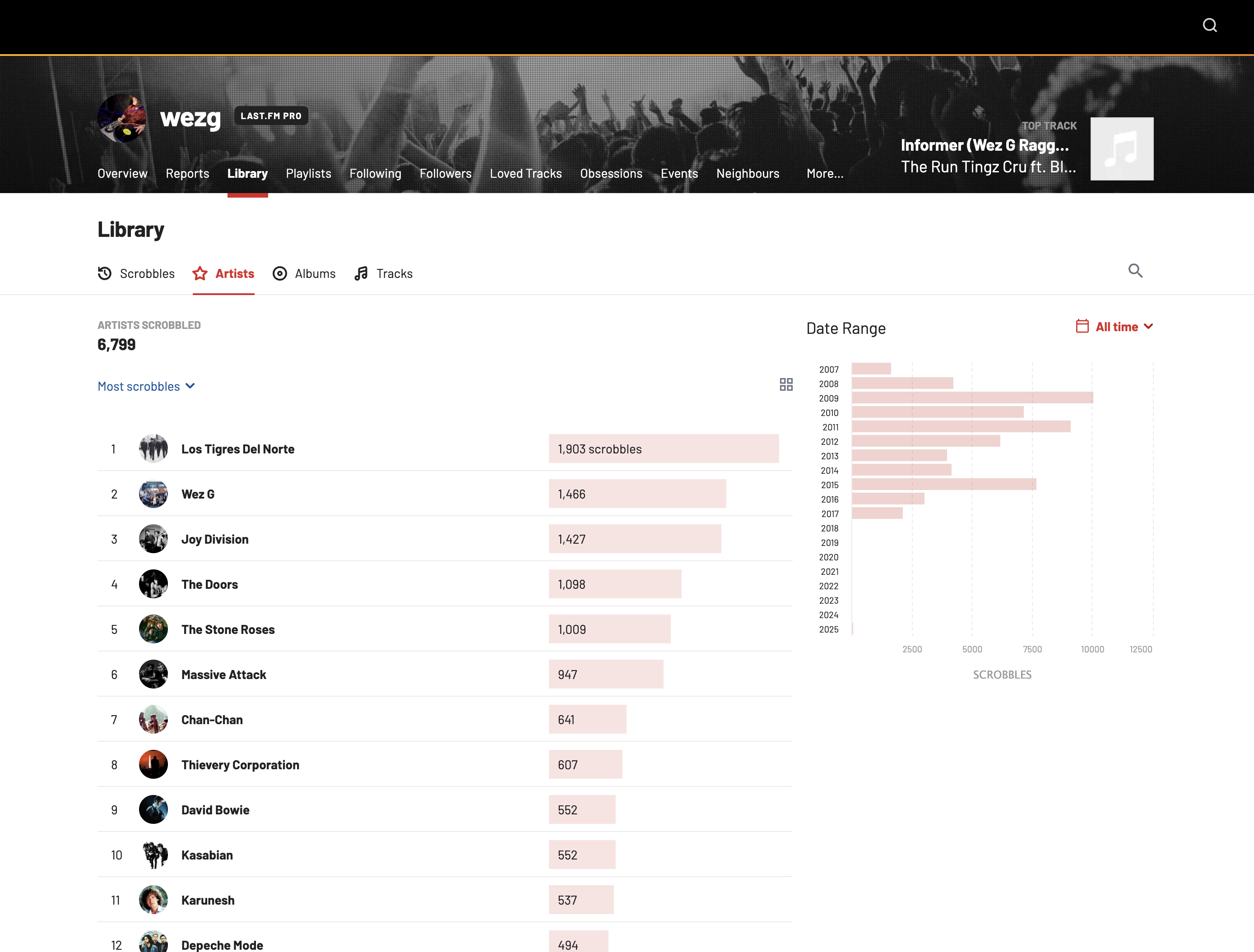 I’ve been spending the afternoon chilling on last.fm, listening to some really great music. For those of you that aren’t yet aware, lastfm is the latest craze and is a very futuristic music site. it can be linked to current social networking applications like myspace, facebook and indeed here…. There are lots of interesting features to the site… the main point is that it gets good music to you and is very much consumer orientated as well as being most excellent for artists. If you sign up there please be sure to search for Wez G.