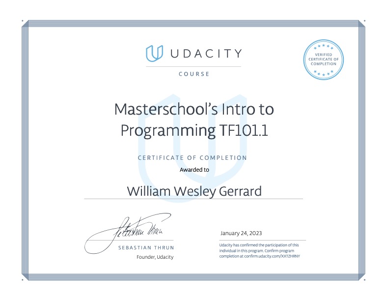 This course done on Udacity was designed by Masterschool, the Tel Aviv based Israeli Cybersecurity education centre where I am studying at present. It was about learning the first steps necessary in computer programming.