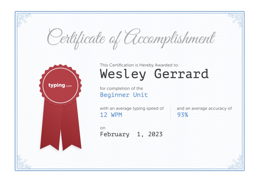 Learning about #cybersecurity on the Masterschool course, requires us to be able to use computers as effectively as possible and one skill that coders need to be adept at, seems simple and obvious, but can’t really be taken for granted. At Typing.com we were enrolled and signed up to do their courses and to hopefully acquire decent touch typing skills. This was the first assessment on that course and set me on the path to learning how to become more efficient and faster in my life as a Four Four Cyber keyboard warrior lol….