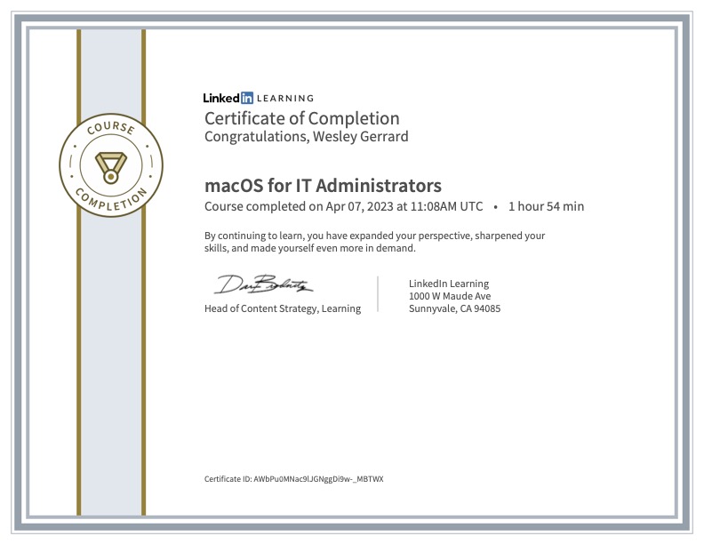 I use macOS so I enjoyed doing this LinkedIn Learning course and found it relatively straightforward. Most cybersecurity work is done on Micorsoft Windows operating systems as these are what the majority of companies and users prefer. A knowledge of all core Operating systems is essential so macOS is one and Linux another.