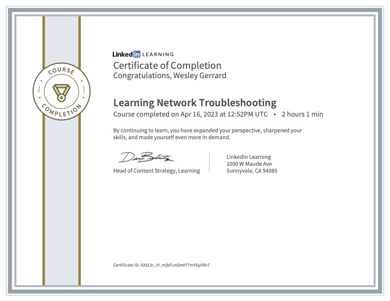 Computers are networked up and it is critical for a cybersecurity expert to be able to understand network configurations and to be able to troubleshoot them in the event of problems. This LinkedIn Learning course was part of my Masterschool education programme.