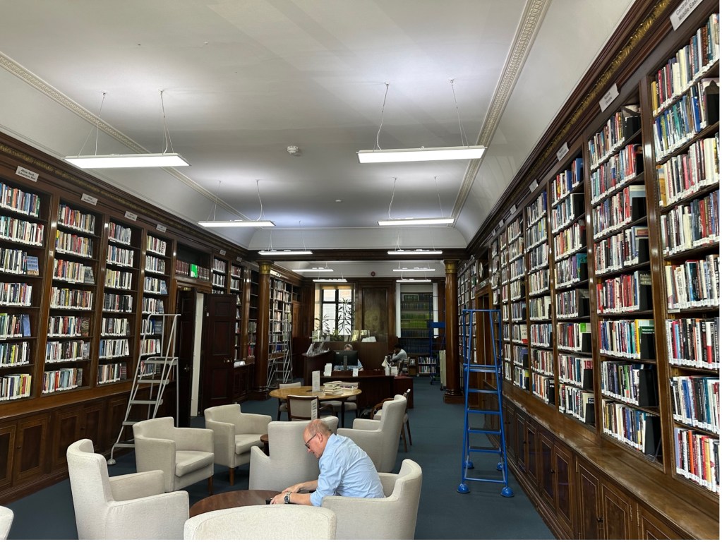 I had a quick session in Parliament and then ran back up to Chatham House. It was a boiling hot summer’s day and I thought, “‘oh, it would lovely to kick back and relax a bit – seats are comfy in here’. Anar gave me my bags back and pointed me in the direction of the Chatham House library on the first floor.