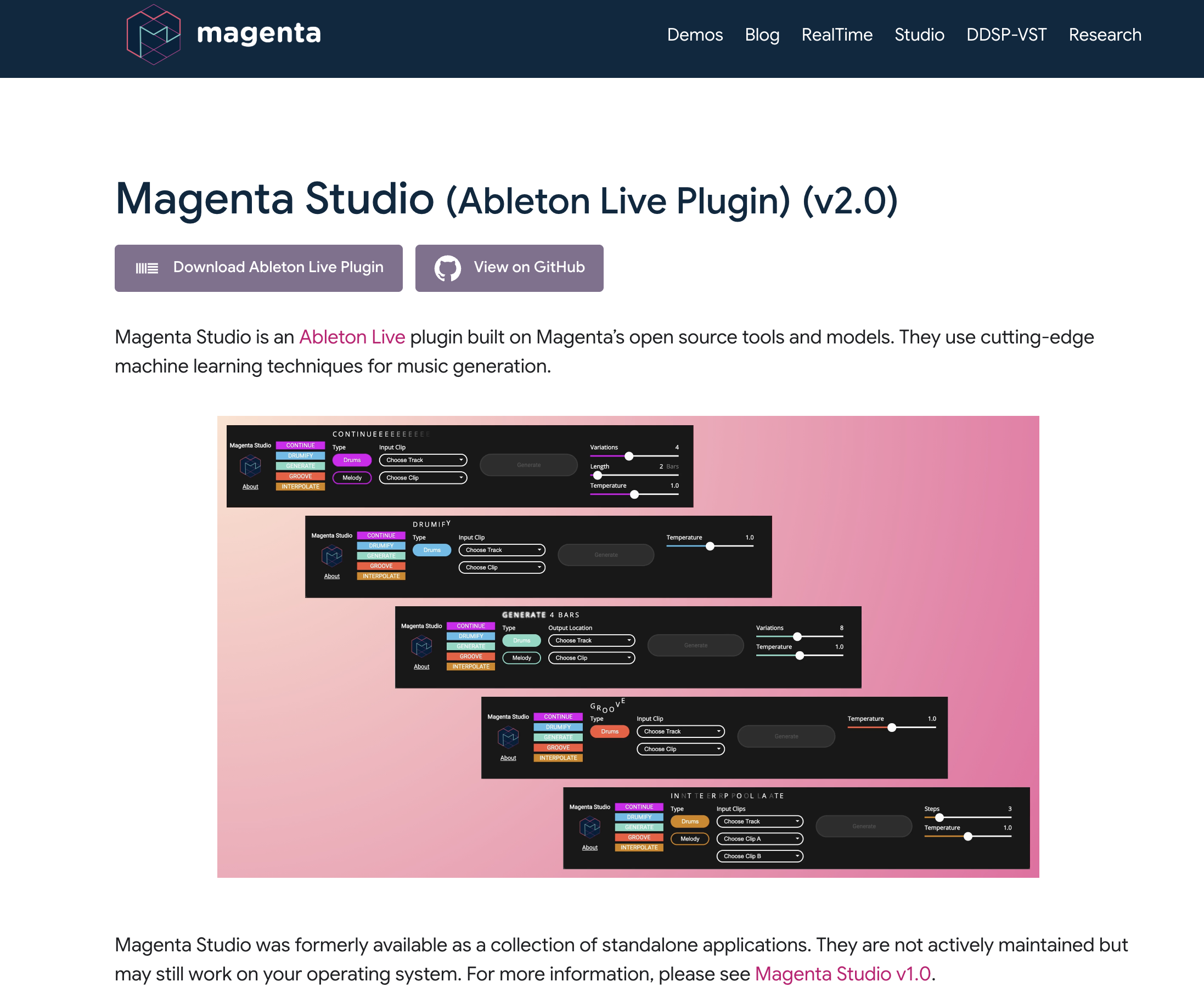 Back to Ableton – I had been wondering about whether ChatGPT would produce Ableton content… I did a quick google for Ableton and AI and this Magenta Studio Plugin came up. I found it on the official Ableton website