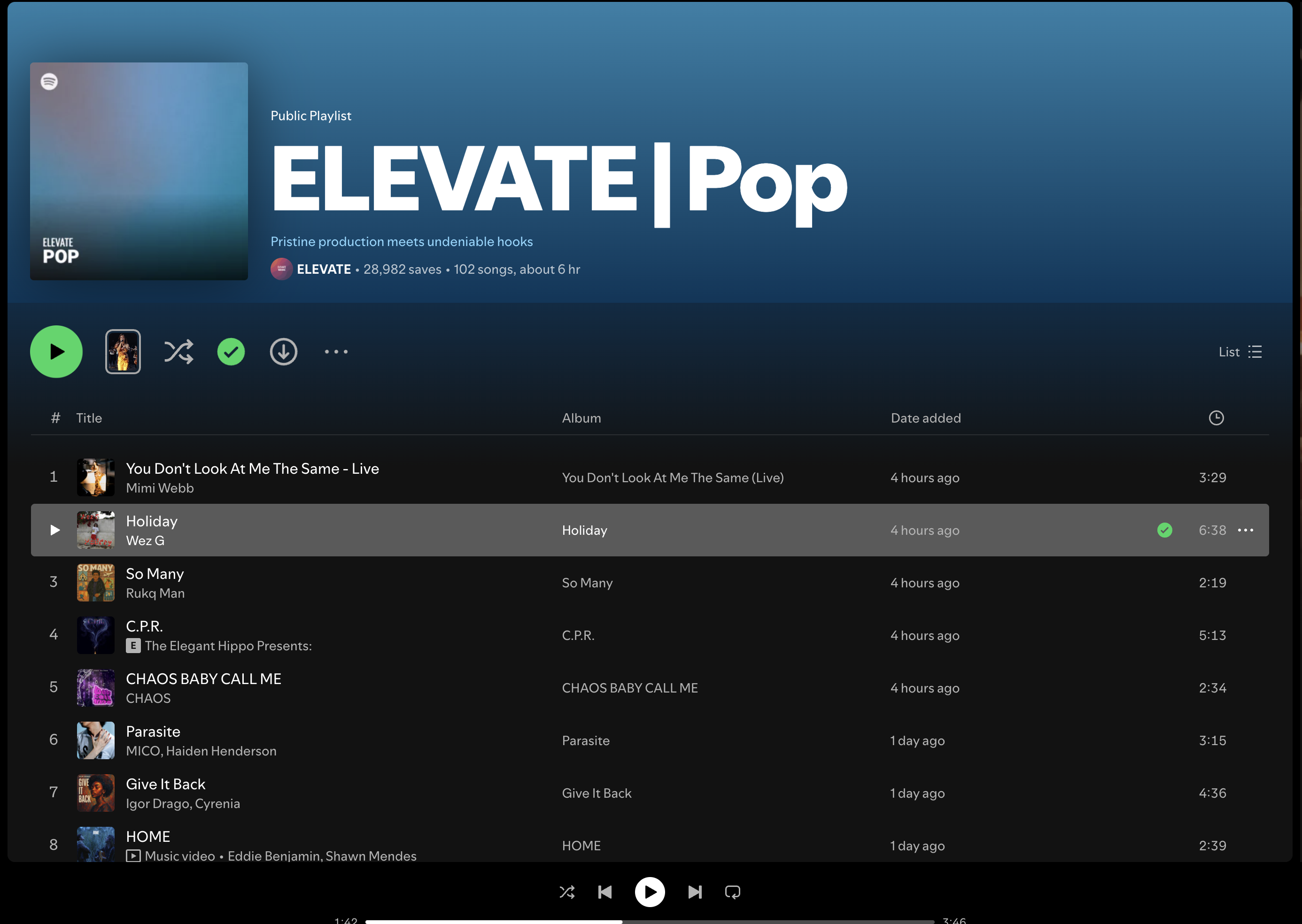 Wez G – Holiday has had more promotional success, this time again on a big Pop Music Playlist: Elevate Pop on Spotify has over 28000 subscribers and I hope that their audience will enjoy Holiday and that it keeps getting a big push out there. Enjoy the playlist and please add it to your Spotify accounts…