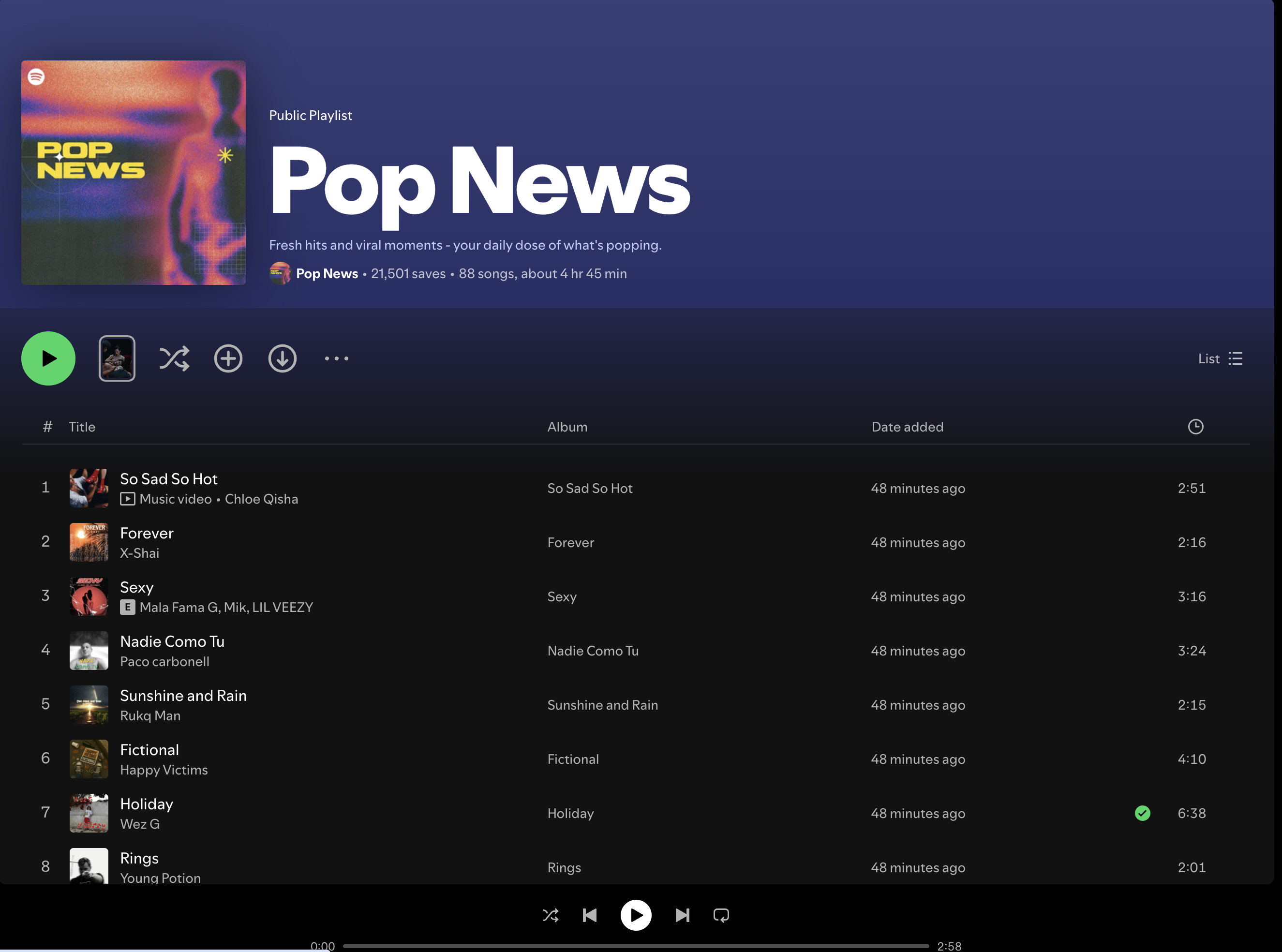 This Pop News Spotify Playlist has over 21K subscribers and Wez G – Holiday has been added to its content. The song has both appeal to mainstream audiences and dance music fans. Please continue to show your support andf check the playlist out.