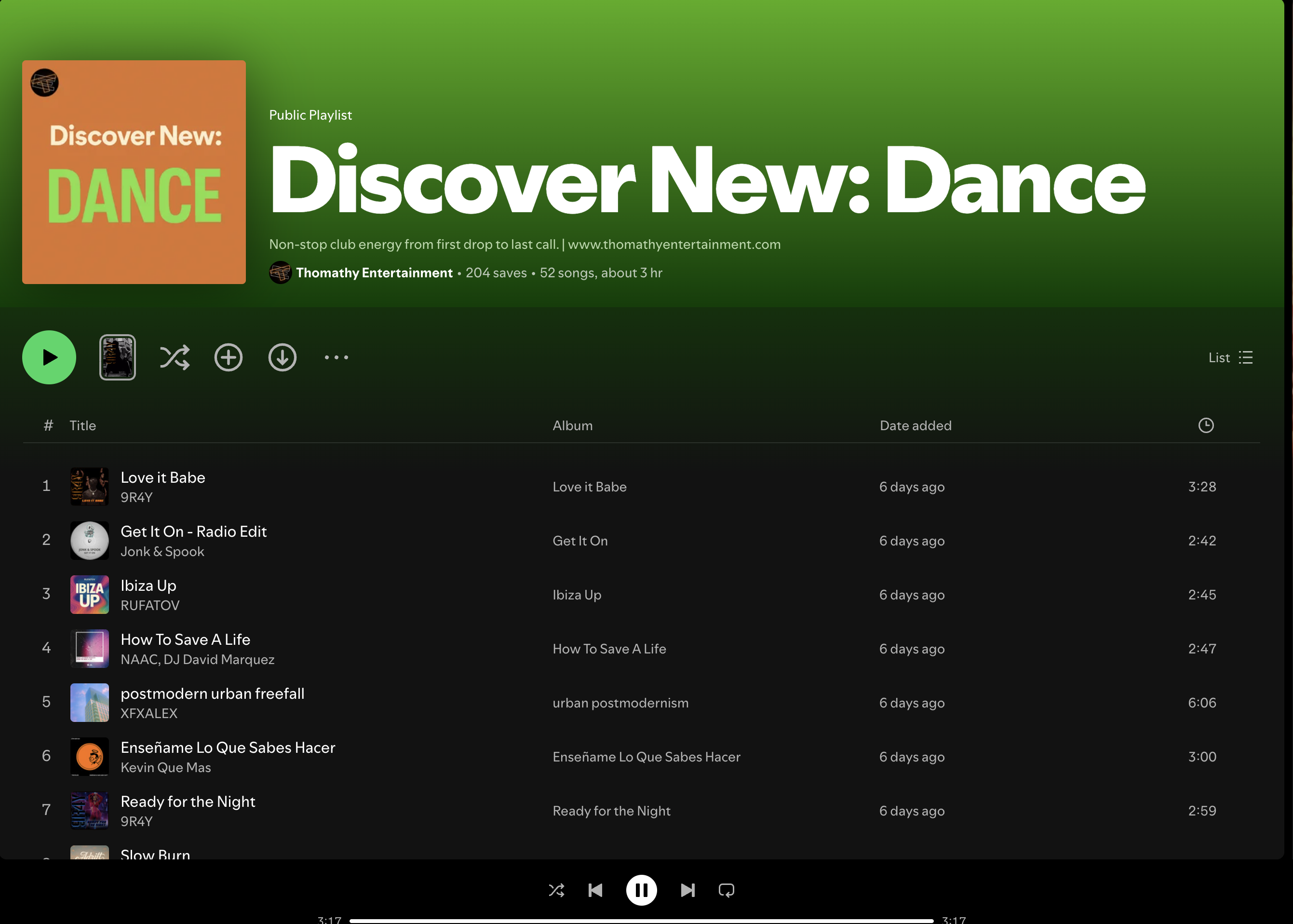 Discover New: Dance Spotify Playlist is curated by Thomathy Entertainment. It now features Wez G – Aliens – which is a track that I am trying to push this week. Please support!