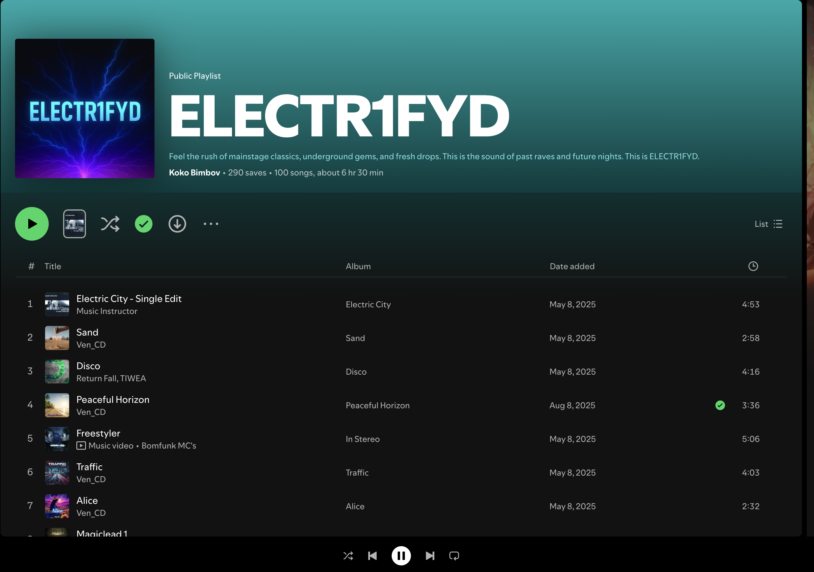 Wez G – Aliens is now featured on the ELECTR1FYD Spotify Playlist curated by Koko Bimbov It’s a track that needs more traction and I encourage you to support this playlist.