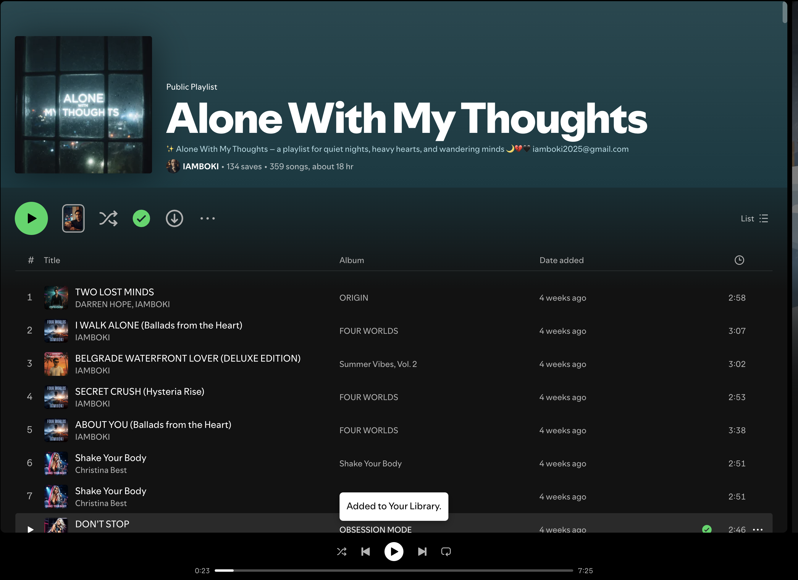 With winter approaching I’m on a drive with Wez G – Cold Outside – It makes it onto Alone With My Thoughts Spotify Playlist which I feel is an apt place for it to appear. I thank the curator, Iamboki, and hope that you can check the playlist and support it.