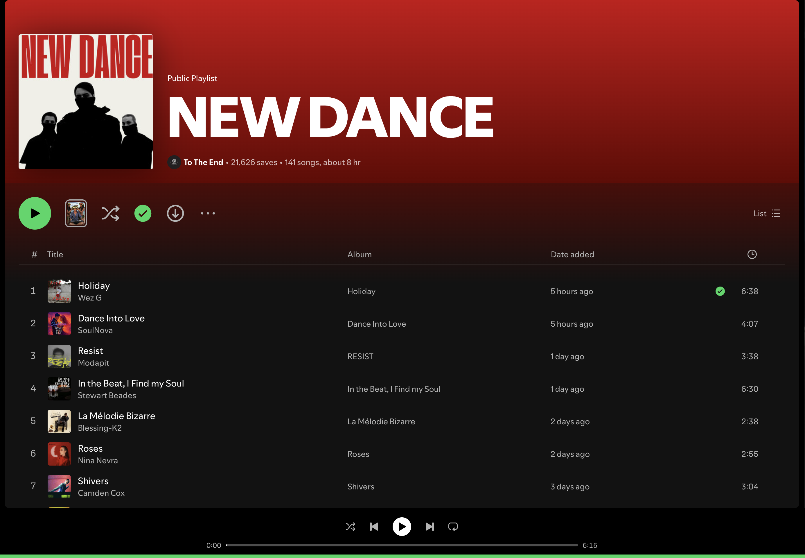 Wez G – Holiday is nicely included as the opening track on this New Dance Spotify Playlist by curator, To The End – The playlist is a big one with over 21K subscribers. Please show your support and get involved!