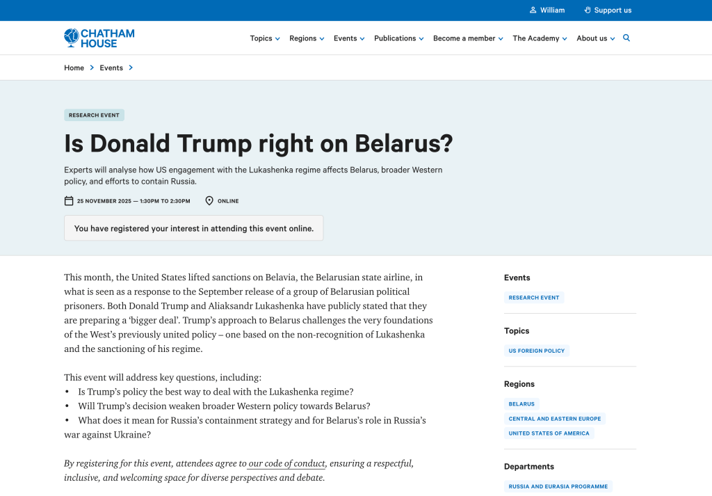 This meeting is part of the Russia and Eurasia Programme at Chatham House. The meeting was with Anaïs Marin, Dr Ryhor Astapenia and Professor Giselle Bosse.