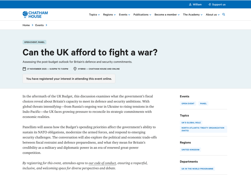 The Strategic Defence Review presents that to fight Russia would be a very immersive experience. It poses potential existential levels of risk, unlike previous wars where we were fighting terrorism. A war with Russia would threaten the homeland. Cyber, social media misinformation and infrastructure would be threatened. There would be ballistic and cruise missiles and drones. War in the twenty-first century is in the digital age. According to the SDR, the U.K. has chosen to take ten years to get to the benchmark as indicated necessary by the SDR despite NATO allies saying we need to be prepared within 3-5 years. We have made the choice in the U.K. to take a lot longer. We need to move faster and the past six months clearly indicate the necessity of this. People are concerned about the NHS and potholes but not defence. In civil society in the U.K. today we are not making the choice that our own military suggests is necessary. Deterrence should be that escalation dominance should be achieved. Our habit for 30 odd years is to make a difficult conversation about public spending. Fighting a war would cost 50% of your GDP with a cost on the population enduring for 3-4 generations.