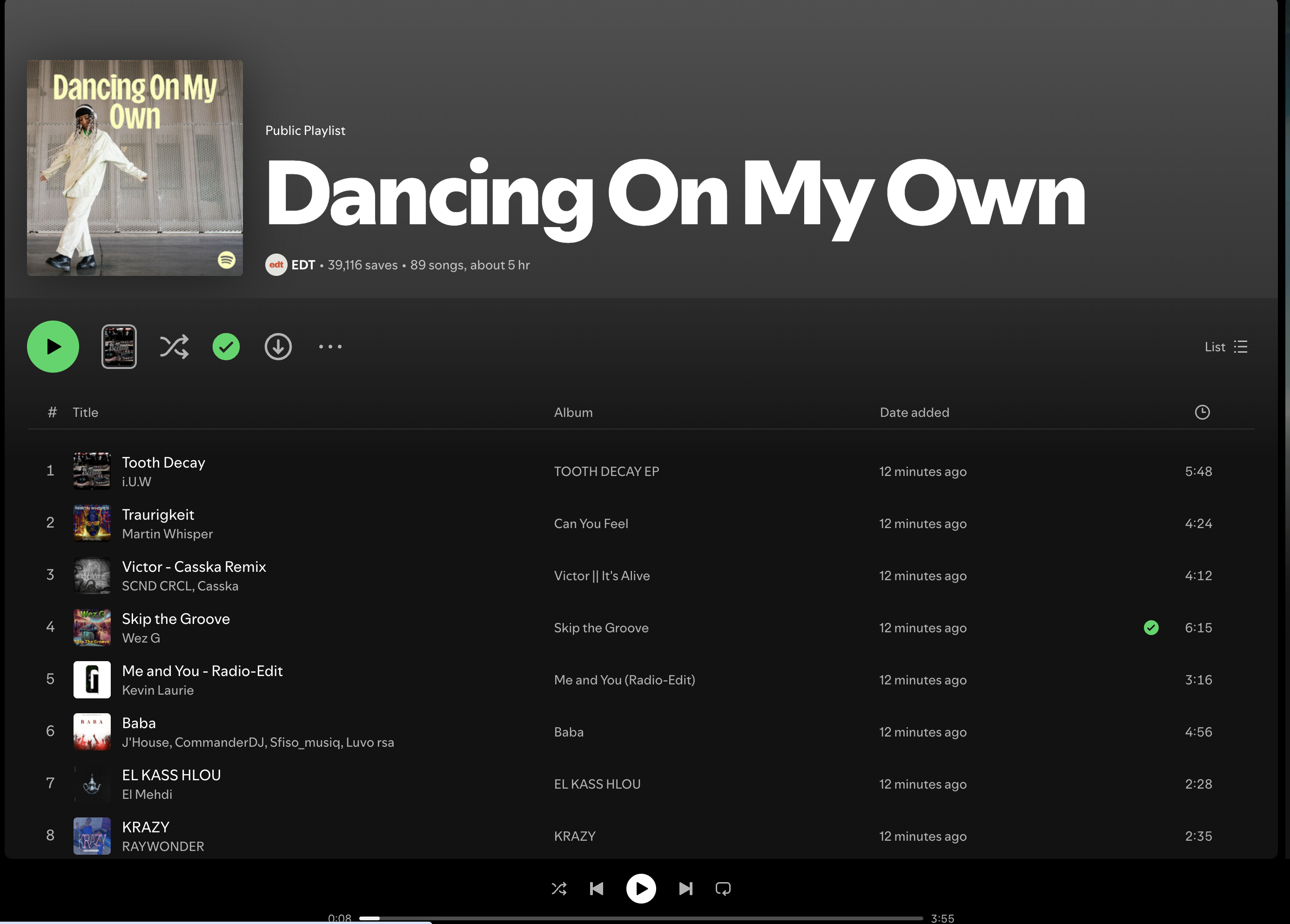 This Dancing On My Own Spotify Playlist is a massive one with over 39K subscribers and it includes my new release; Wez G – Skip The Groove – The curator is EDT – I hope that you can tune into the playlist and give it a listen.