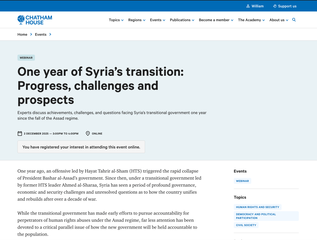 The roadmap has almost been completed. Ahmed al-Sharaa who leads the government has tried to be inclusive and to achieve everything. A national dialogue is supposed to have brought all actors together to discuss the new State. This did not play out well. The constitutional declaration was not seen positive by many as it concentrated powers with al-Sharaa. The selection of people in the government do not reflect upon Syrian society. Has the political economy emerged in a certain direction? They have tried to root out corruption among former government officials. There is a lack of transparency. Business owners in Damascus are reporting that government officials are trying to muscle in on business. There is a tightly-controlled centralized style of government. Despite the appointment of technical ministries, everything is tightly controlled in the hands of a few, costing the country many opportunities. Will this change after the first year of the transition? There has been space in civil society for people to speak freely and demonstrate. This is not universal, however, and is better in Damascus than in other areas where the older legal frameworks are still being used. Political parties will be allowed and this is the main challenge to allow this. A clear answer is not being given with regard to this by the transitional government.