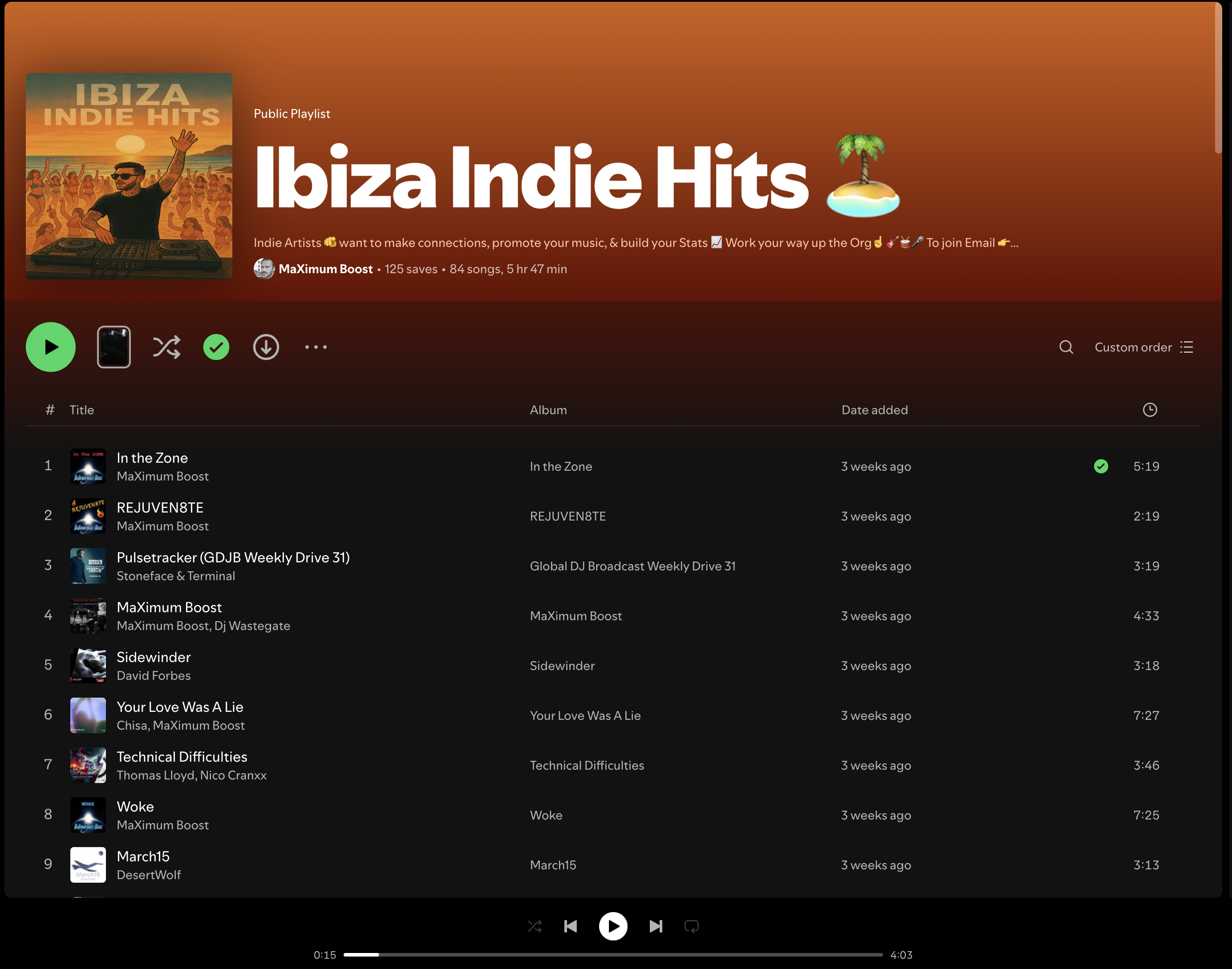 Ibiza Indie Hits Spotify Playlist welcomes Wez G – I Can Feel Your Love onto its collection. It is by curator, MaXimum Boost, and I hope that you will be able to check it out…