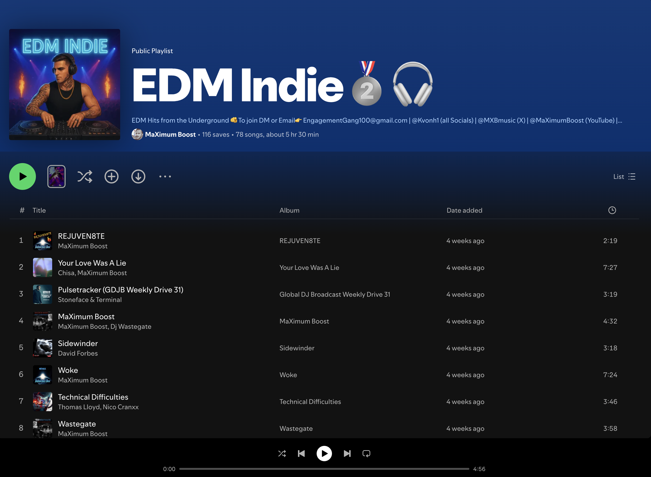 Wez G – Move To The Dancefloor continues to attract support and is now on EDM Indie Spotify Playlist by curator, MaXimum Boost – please support it!