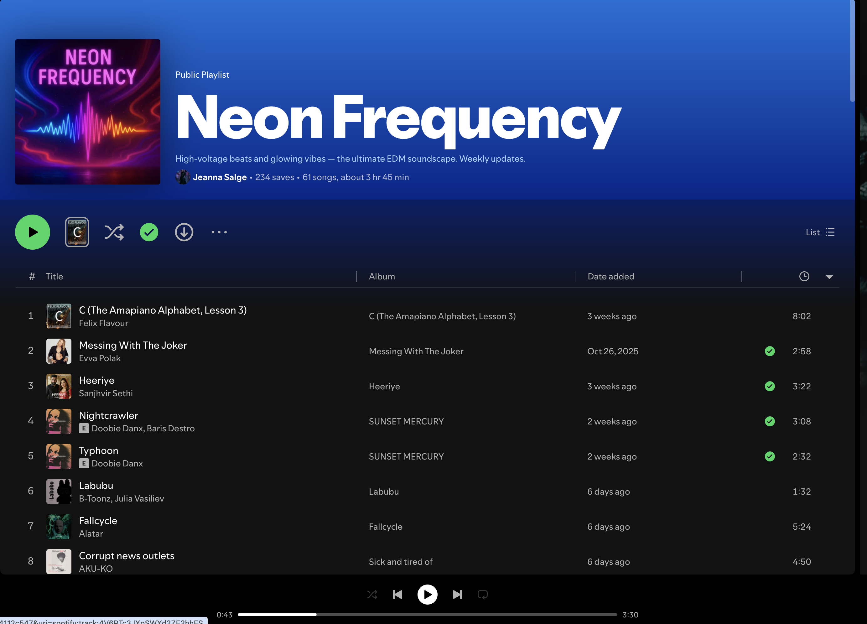 The exciting sounding, Neon Frequency Spotify Playlist now features Wez G – Skip The Groove. The curator is Jeanna Salge. Please support this playlist!