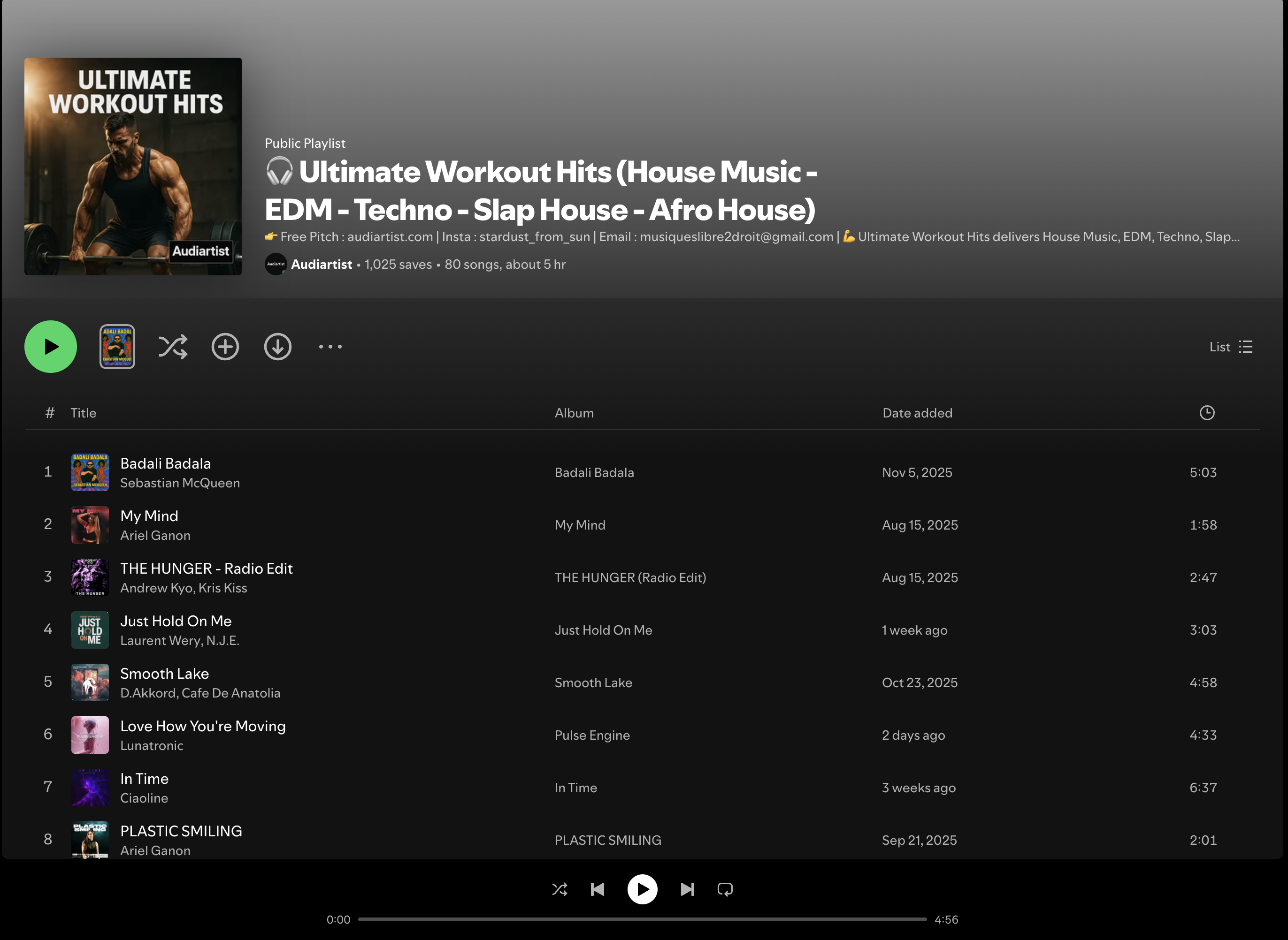 Wez G – Skip The Groove has a Spotify canvas of a woman skipping. This might have encouraged this Ultimate Workout Hits Spotify Playlist to include it. The playlist is made by curator, Audiartist. I hope that you will be able to support it!