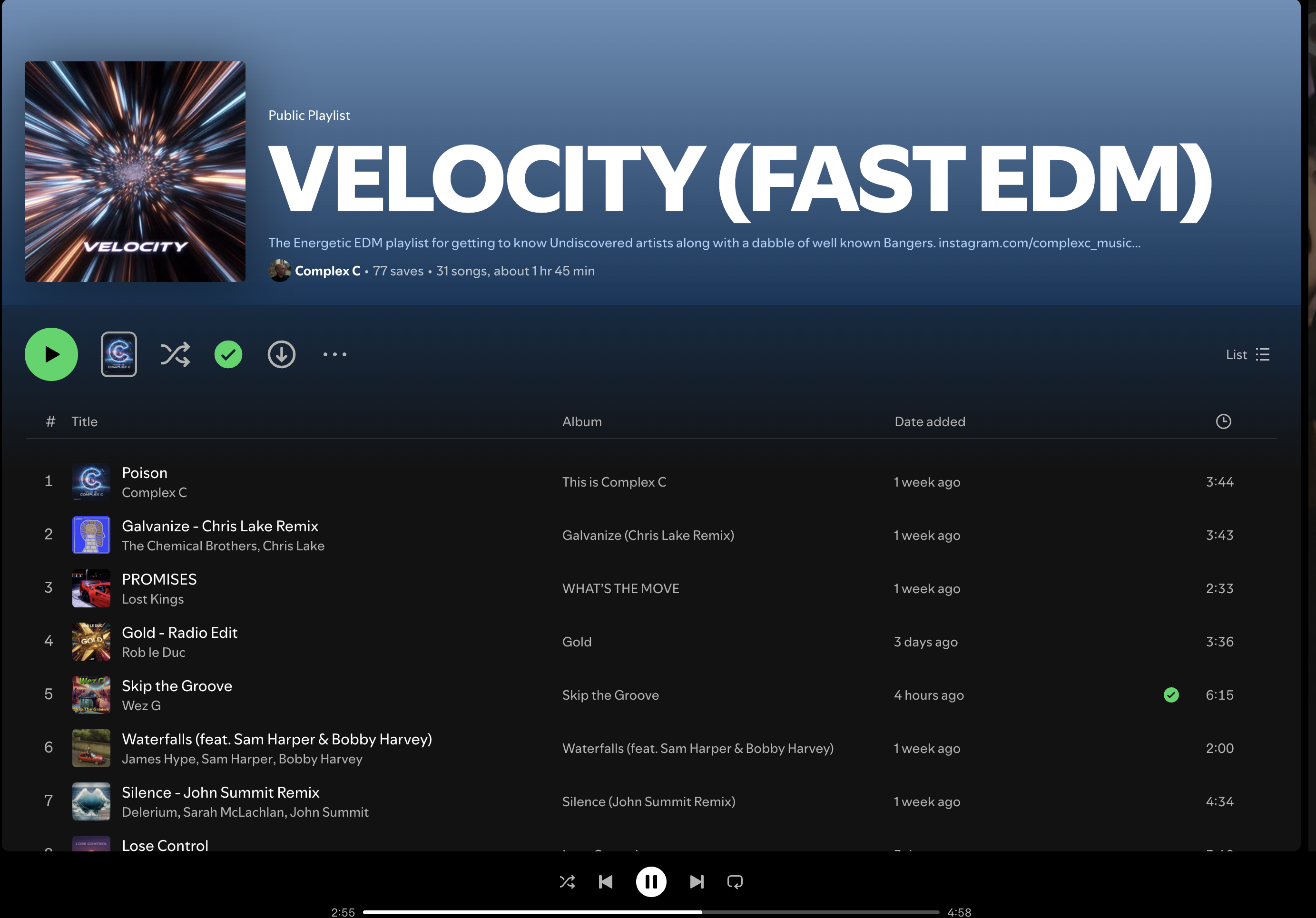 The Driving Chicago House sounds of Wez G – Skip the Groove have made it onto Velocity (Fast EDM) Spotify Playlist by curator, Complex C. I hope that you can support!
