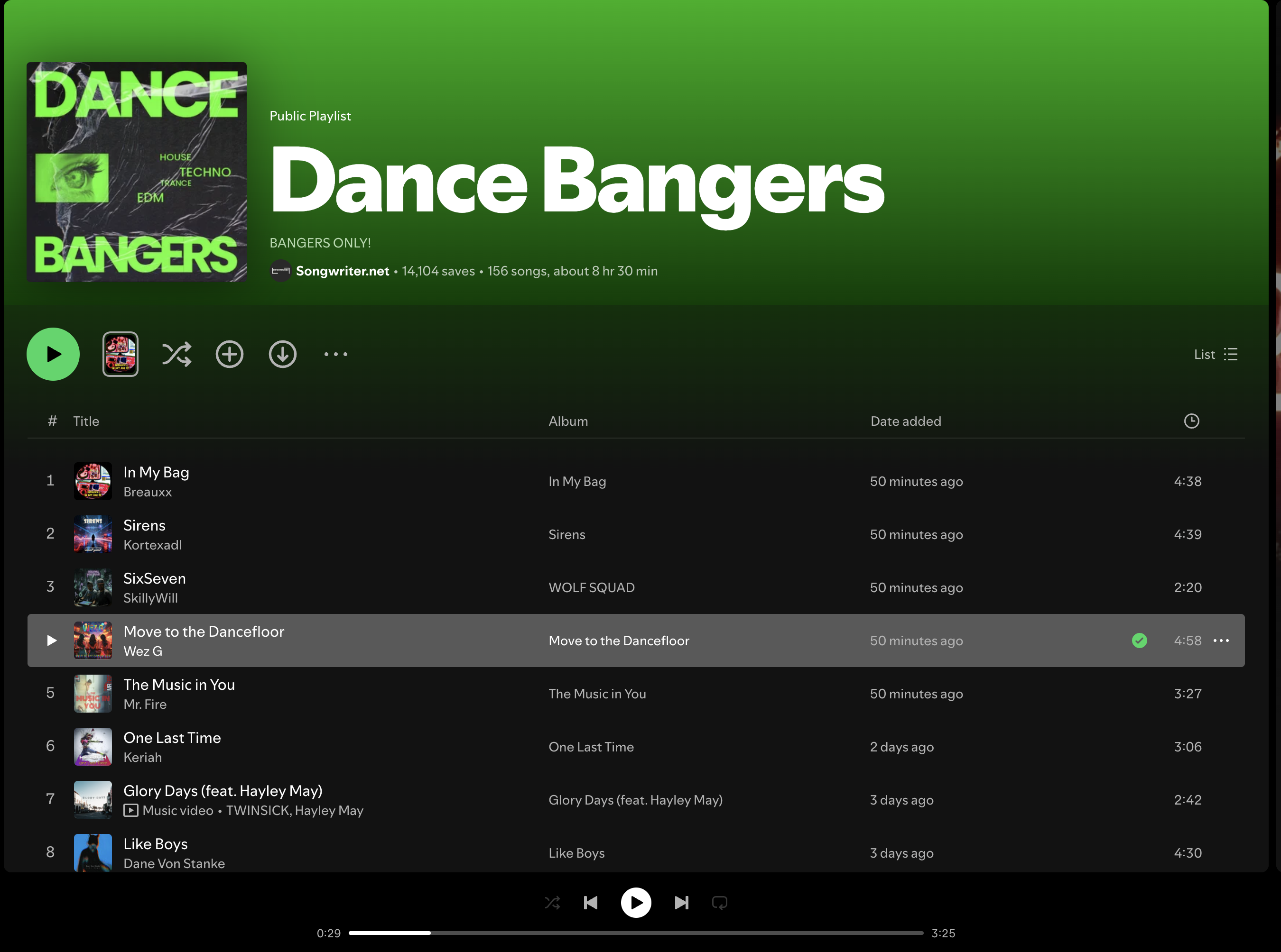 Wez G – Move To The Dancefloor is now on Dance Bangers Spotify Playlist by curator, Songwriter.net The playlist has 14K plus subscribers so I hope you too get involved!