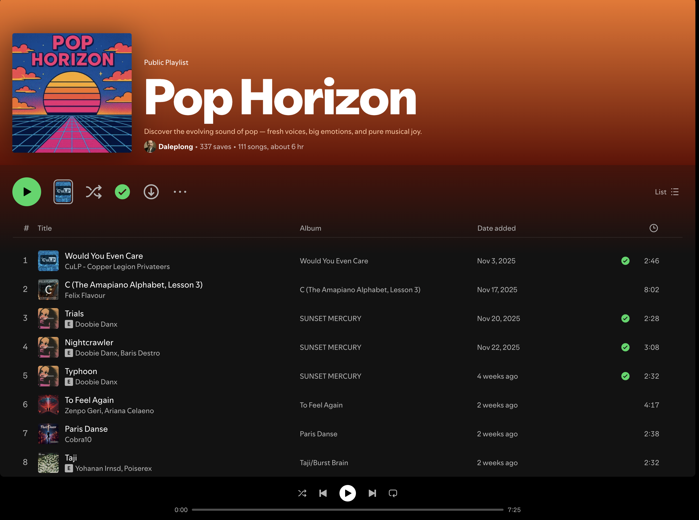 My new release Wez G – Winter Song which is a dance / pop crossover hit, is now on Pop Horizon Spotify Playlist by curator, Daleplong. I hope that you can support!