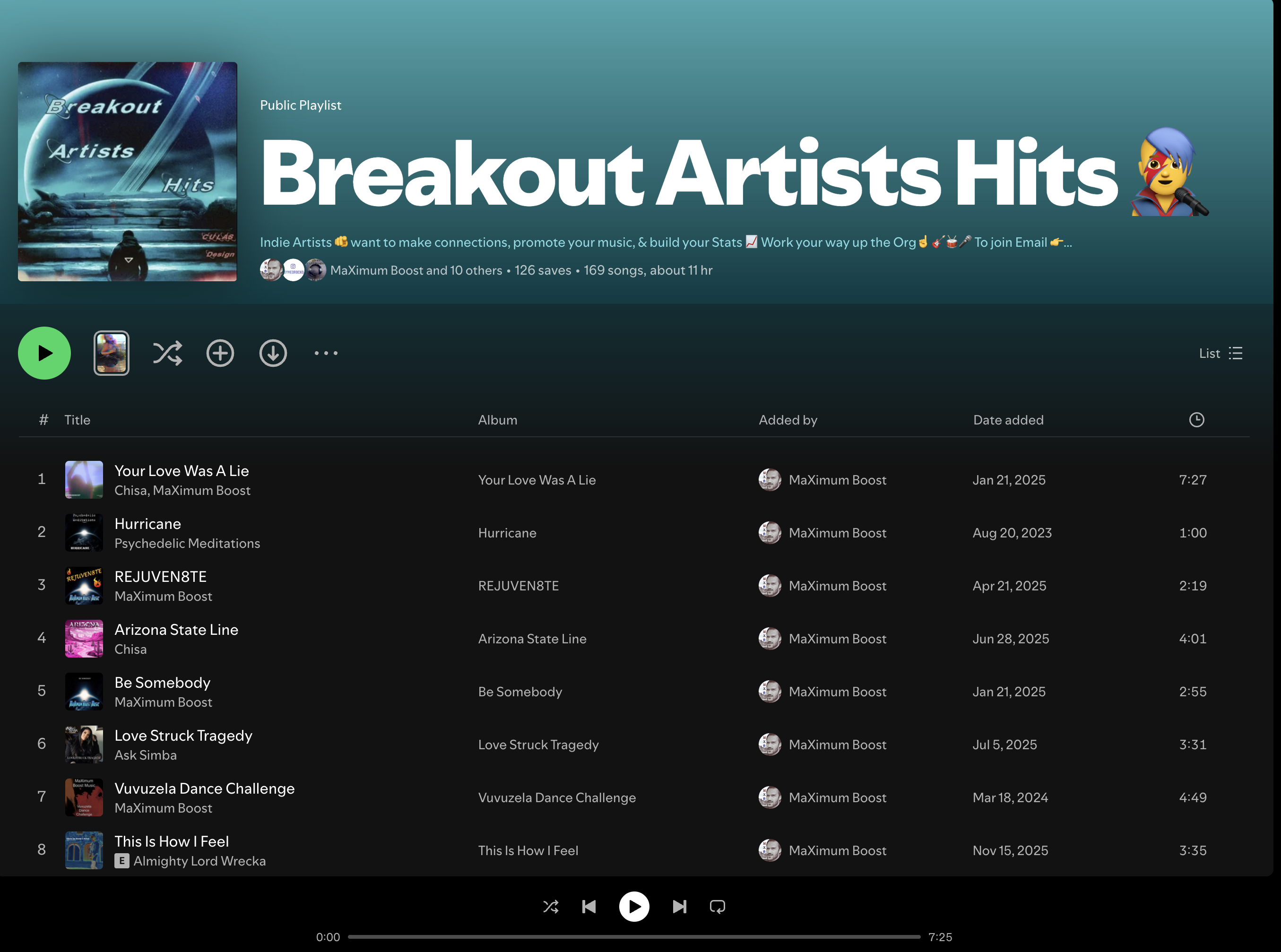 My new release, Wez G – Winter Song is humbly appearing on Breakout Artists Hits Spotify Playlist by curator, MaXimumBoost. I hope that you can support it!