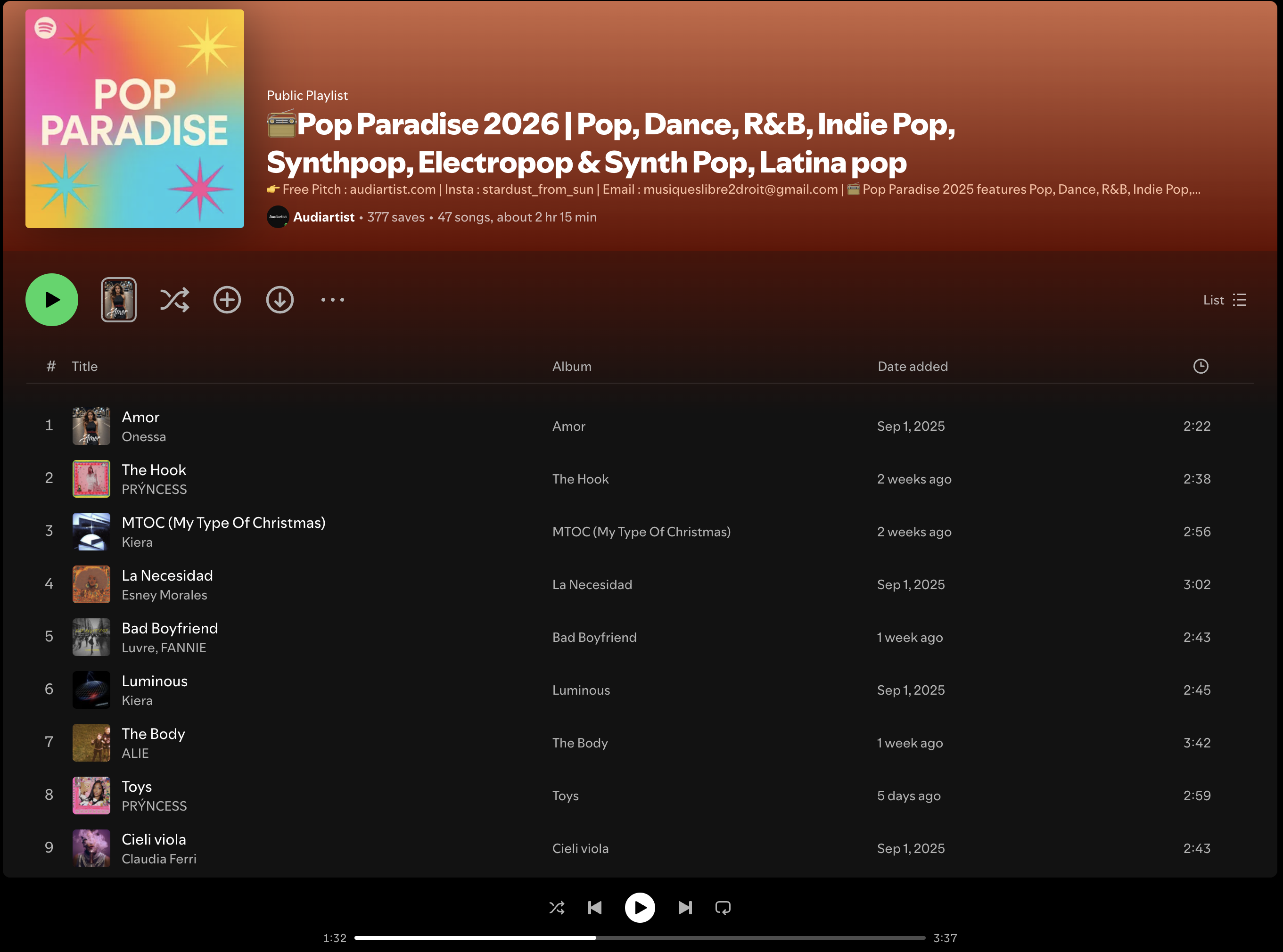 My new release, Wez G – Winter Song is now on Pop Paradise 2026 Spotify Playlist by curator, Audiartist. Please support it!