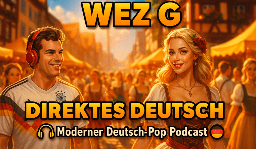 The author created a promotional AI short video for their German language pop music podcast, “Wez G – Direktes Deutsch.” Listeners can watch the video on YouTube and access the podcast webpage through the provided links to explore episodes and content related to the podcast.