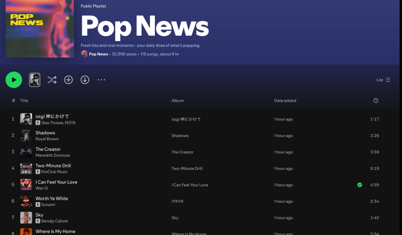 Wez G’s track “I Can Feel Your Love” is gaining traction, featured on the Pop News Spotify Playlist curated by Pop News. Listeners are encouraged to support the playlist, highlighting the song’s growing popularity and promoting its visibility within the music community.