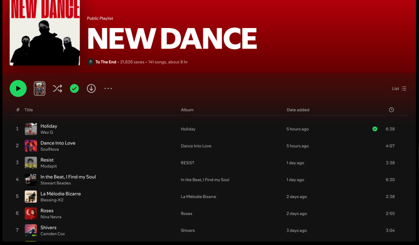 Wez G’s “Holiday” is featured as the opening track on To The End’s popular New Dance Spotify Playlist, which has over 21,000 subscribers. Listeners are encouraged to support the playlist and engage with the music. Further details can be found on Wez G’s official website.