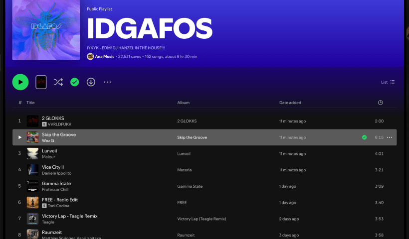 Wez G’s new track, “Skip The Groove,” is featured in the IDGAFOS Spotify Playlist curated by Ana Music, which boasts over 22,000 subscribers. Listeners are encouraged to check it out and show their support for the track. More details can be found on the official website.