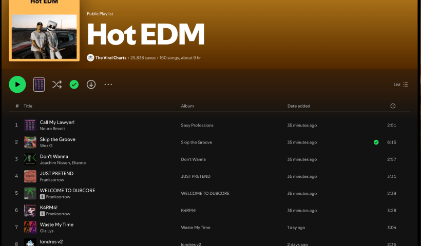 Wez G’s track “Skip The Groove” is featured as the second entry in The Viral Charts’ Hot EDM Spotify Playlist, which boasts over 25,000 listeners. The curator hopes to attract even more fans to the playlist, inviting them to explore the music linked therein.