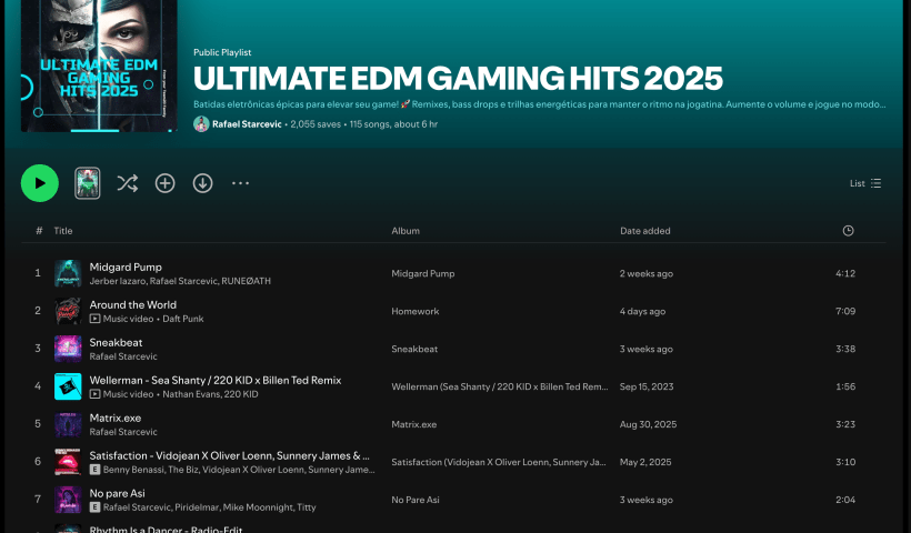 Wez G’s track “Aliens” has made its way onto the Ultimate EDM Gaming Hits 2025 Spotify Playlist, curated by Rafael Starcevic. The song is enjoyable and resonates with gamers. Support for this playlist is encouraged. More information can be found on the provided link.