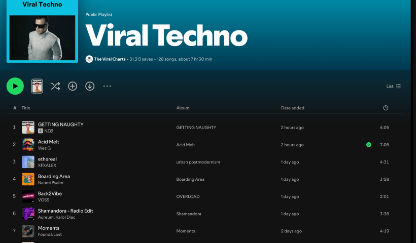 The Viral Techno Spotify Playlist by The Viral Charts boasts over 31K subscribers, showcasing popular tracks. Notably, Wez G’s “Acid Melt” receives significant industry support, including a request for a WAV PROMO from DJ Jon DaSilva. The official music video for “Acid Melt” is also recommended.