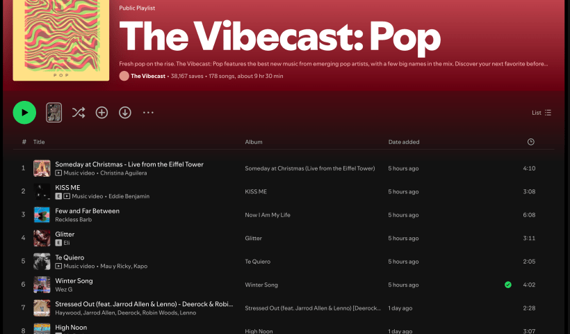 Wez G (Winter Song) on Pop Paradise Spotify Playlist