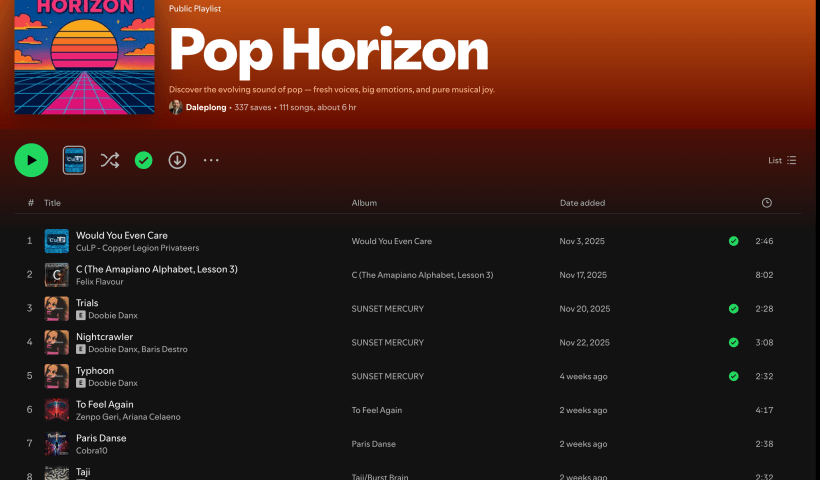 Wez G’s track “I Can Feel Your Love” is featured on the Pop Horizon Spotify Playlist curated by Daleplong. Listeners are encouraged to support the journey through this musical experience. More details and the playlist can be found through the provided links.