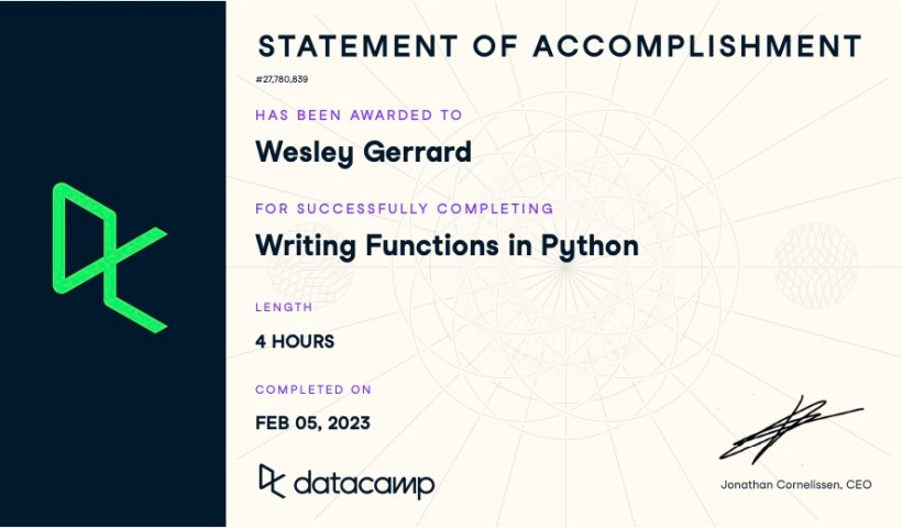Python is a well-used computer programming language – This course done on Datacamp, part of my Masterschool #cybersecurity study programme.