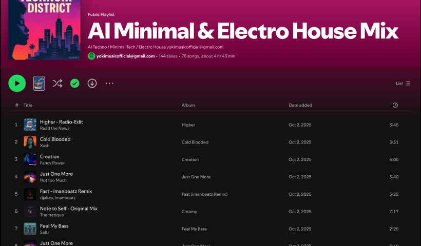 Wez G’s Chicago House track “Skip the Groove” has been added to the AI Minimal & Electro House Mix Spotify Playlist by curator yokimusicofficial@gmail.com. Listeners are encouraged to share and support the track, accessible through the provided links for both the playlist and the artist’s website.